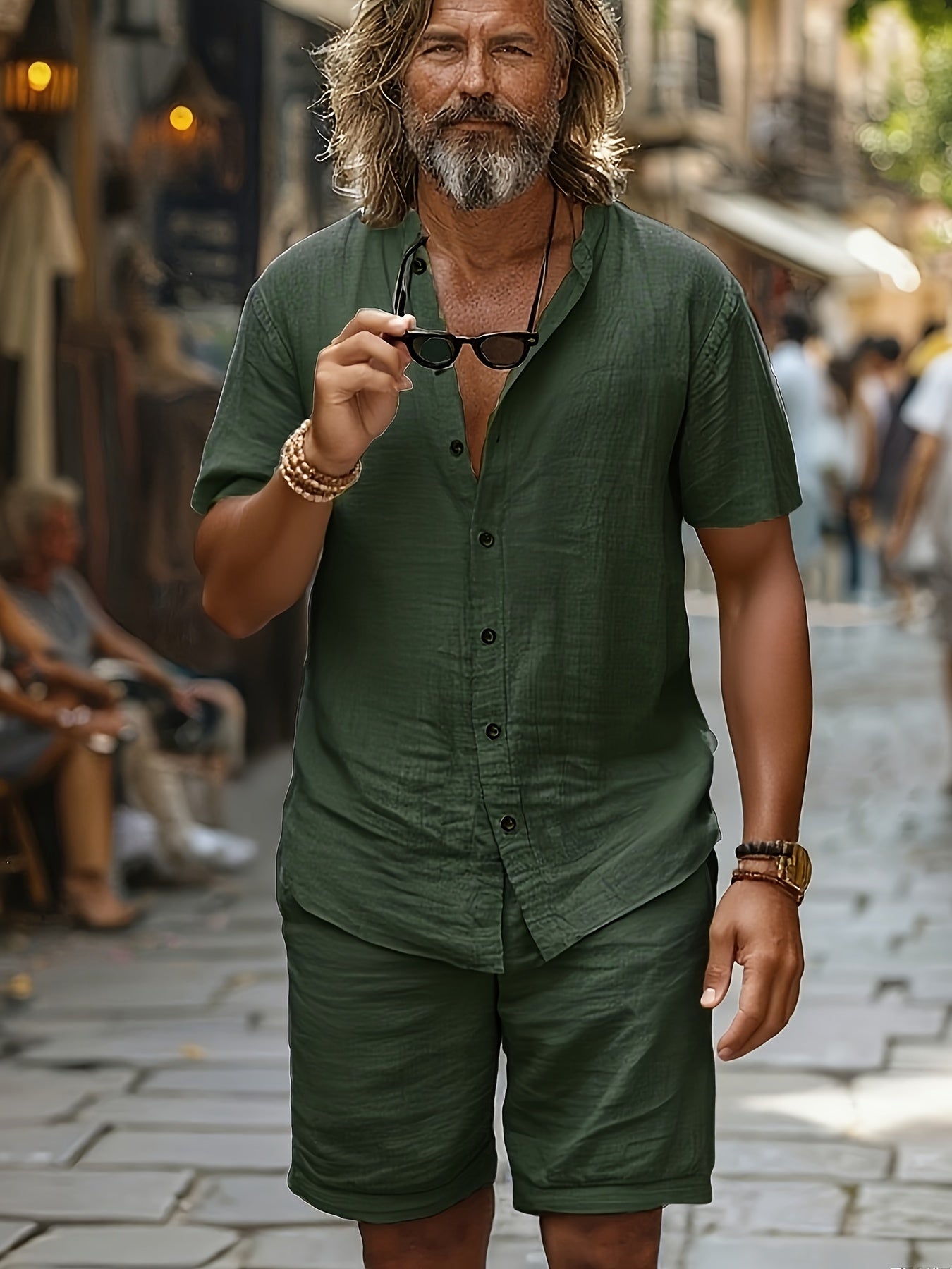 El Conjunto La Costa™ Doble no es solo ropa — es una declaración de estilo y libertad. Diseñado para hombres que valoran la comodidad sin renunciar a la elegancia, combina un corte relajado con un tejido premium de algodón puro, suave, ligero y transpirable. Perfecto para las tardes de primavera, escapadas a la playa o paseos urbanos con un toque de distinción.